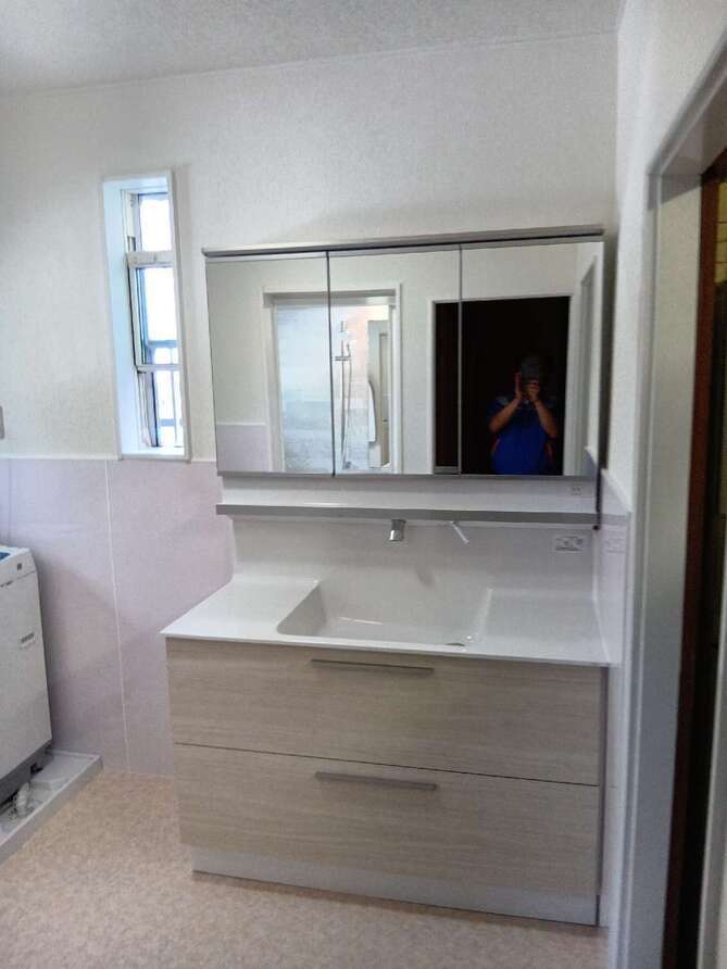 洗面室の改装工事をしていただきました。 元々、広めの洗面台を…
