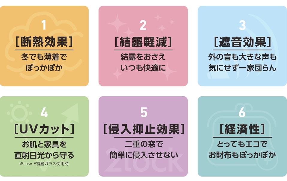断熱性・防音性・防犯性の向上、そしてそれに伴う結露の軽減と光熱費の削減で、